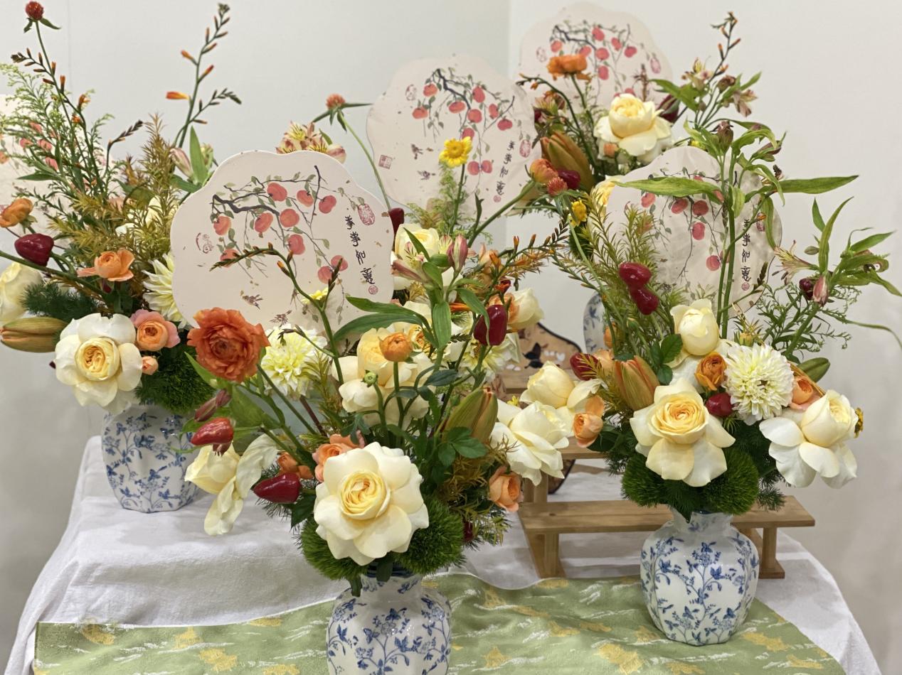 首期国风花艺活动中,花艺老师讲解花材选择、色彩搭配等技巧与文化内涵,职工们用暖色调花材创作,在沉浸式体验中掌握技法、舒缓压力,感受传统美学魅力。