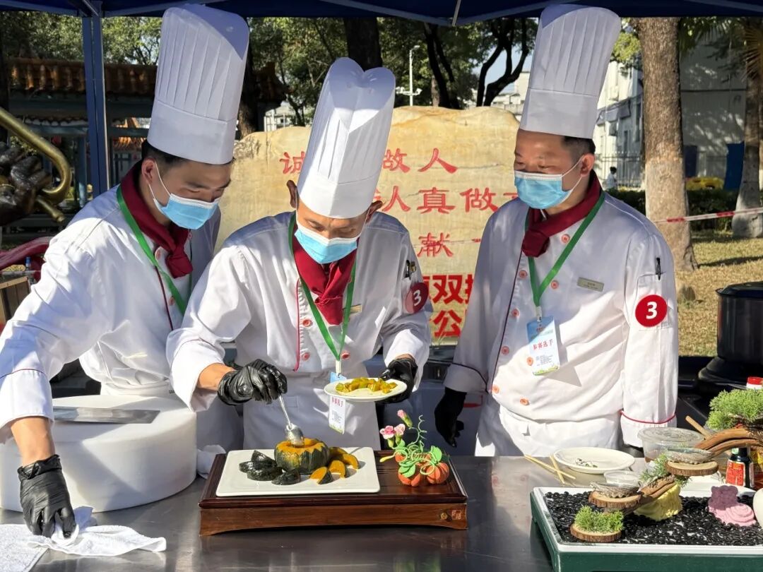 12月16日下午,“香飘东江”2025年石碣镇职工烹饪技能竞赛在四甲文体馆广场举行,11家餐饮企业选手同台竞技,以匠心驭食材,以巧手烹佳肴,共同描绘美食的匠心美景。赛事依托“供港蔬菜基地”优质资源,深度融合蔬食文化与烹饪匠心,让工匠精神在竞技中薪火相传。