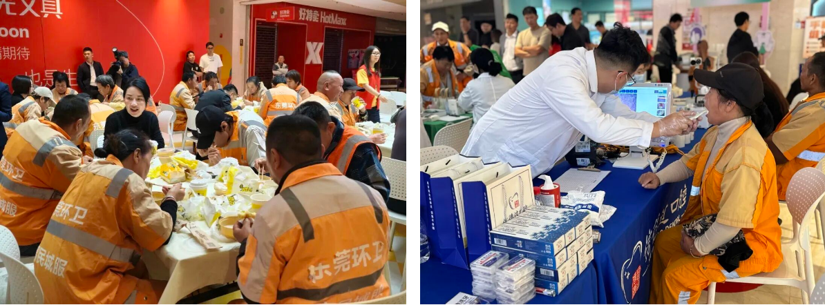 据介绍,近年来市总工会持续深化对环卫工人的关爱服务,已建成 657家工会驿站、升级97家智能化驿站,为户外劳动者提供饮水、充电、休憩等便利;同时开展环卫工人专场疗休养、健康体检、心理关怀等活动,切实提升大家的幸福感。如今,东莞银行、东莞农村商业银行等爱心企业也积极加入,形成全社会关心支持环卫事业的良好氛围。