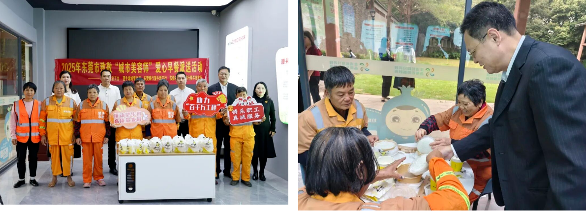 在广东省第32个环卫工人节即将到来之际,10月23日,2025年东莞市致敬“城市美容师”爱心早餐派送活动在旗峰公园城市服务驿站・工会驿站外广场温情启幕。活动由市总工会、市城市管理和综合执法局联合东莞农村商业银行、东莞银行共同主办,除市主会场外,33个镇街(园区)分会场同步开展,市镇两级统筹经费超100万元,为全市4.5万名环卫工人送上暖心关怀。