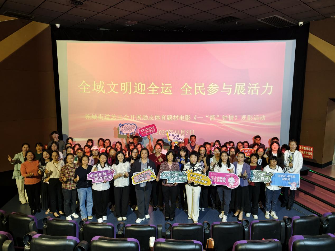 为深入学习贯彻习近平总书记关于加快推进体育强国建设的重要论述,扎实推进全域文明宣传教育建设,11月5日,莞城街道总工会联合残联、宣教文体旅办、妇联等多个部门单位,共同组织党员干部职工开展励志体育题材电影《一“箭”钟情》观影活动,以光影之力传递拼搏精神,为文明建设注入活力,为全国第十五届运动会、全国第十二届残疾人运动会暨第九届特殊奥林匹克运动会献礼。
