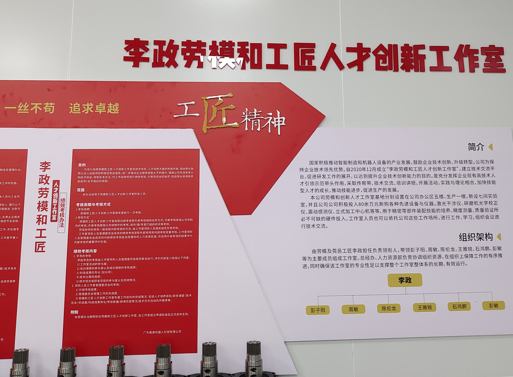 工作室现有面积超过500㎡,设有办公区、人才培训室、装配试验区,配有20多台/套设施和设备,能够满足实训以及攻关等工作需要。工作室立足东莞产业优势,以李政示范引领凝聚技术骨干,形成良性工作格局。团队深耕PCB微钻装备精度、效率及智能化升级,多项自主研发成果落地,填补国内技术空白,以“传帮带”模式,通过实操、研讨等培育复合型人才。工作室近年获得成果包括德国红点工业设计优秀奖、中国标准创新贡献奖、省长杯工业设计大赛二等奖、市首台套设备、市科技进步奖二等奖等荣誉。