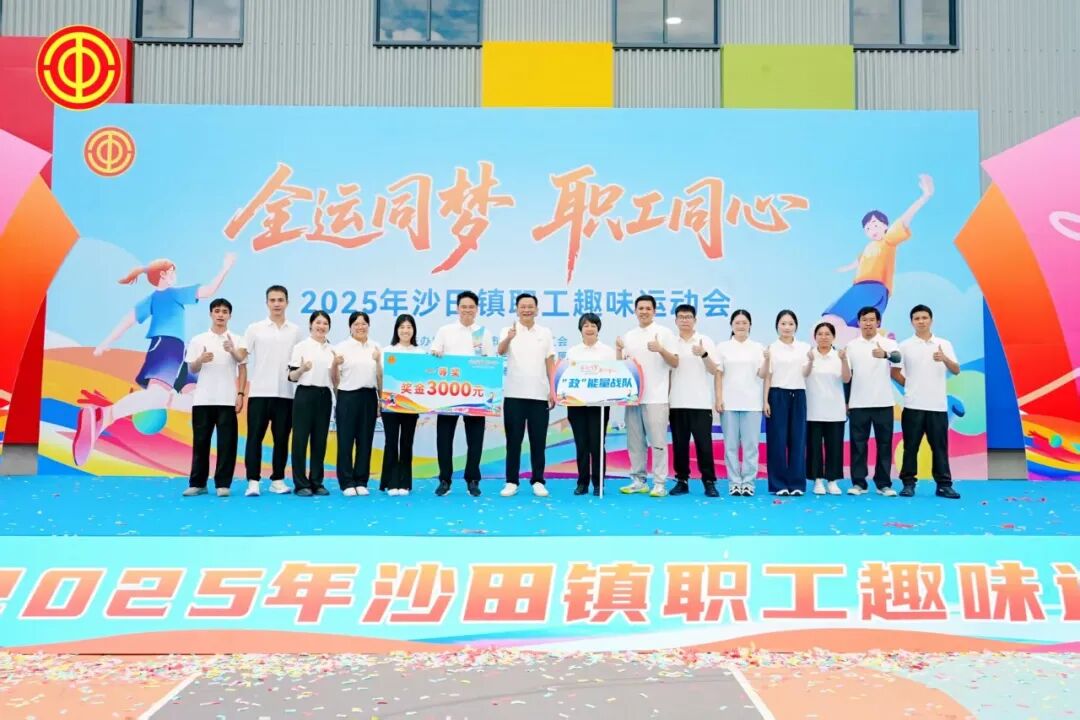 为喜迎第十五届全运会,深入营造 “全民全运、同心同行” 的浓厚社会氛围,进一步增强工会组织的凝聚力与向心力,充分展示广大职工团结拼搏、昂扬向上、开拓创新的时代风采,10 月 12 日,沙田镇总工会在沙田锐空间文体社区举办 “全运同梦 职工同心” 2025 年沙田镇职工趣味运动会。40 支参赛队伍、400余名运动员齐聚赛场,共同开启这场凝聚人心的运动盛宴。 本次运动会共设置幸福穿越、协力前行、突破难关、同舟共济四大竞赛项目,将趣味性与协作性深度融合,既考验团队默契,又彰显拼搏精神。在比赛过程中,各参赛队伍斗志昂扬、奋勇争先。队员们相互鼓劲、默契配合,赛场上欢呼声、加油声此起彼伏,充分展现了沙田镇职工积极向上、团结奋进的精神风貌。大家纷纷表示,将以此次运动会为契机,把赛场上的拼搏精神融入到工作中,为沙田高质量发展贡献更多力量。 经过多轮激烈角逐,运动会最终决出一等奖 1 个、二等奖 2个、三等奖 3 个、优胜奖 5 个。其中,“政”能量战队凭借出色的团队协作与稳定发挥摘得一等奖桂冠。 此次趣味运动会的成功举办,不仅为职工们提供了交流互动、展现自我的平台,更以运动为纽带凝聚了奋进合力,进一步激发了全镇职工的干事热情。下来,沙田镇总工会将持续聚焦职工需求,做实做强做优工会服务力,不断丰富职工文化活动形式,切实提升职工的获得感、幸福感与归属感,引导广大职工以更加饱满的热情、更加昂扬的斗志投身于湾区至美滨海港城建设中。