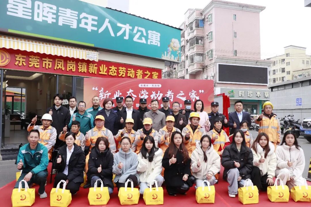 为切实关爱新就业形态劳动者,传递城市温度与社会关怀,1月22日,由凤岗镇总工会主办,凤岗镇社会工作事务中心、工商业联合会(商会)、新的社会阶层人士联合会、广东辉龙人力资源服务有限公司联合协办的“新业态劳动者之家”揭牌仪式暨爱心早餐派送活动顺利举行。本次活动由东莞市点冠食品有限公司倾情承办,以实际行动践行社会责任,为环卫工人、物业安保人员、快递员、商场信息录入员等近50名新就业形态劳动者代表送上一份冬日温暖。 与会领导共同为“新业态劳动者之家”揭牌。随着红绸徐徐拉开,这个集休憩、补给、交流、维权功能于一体的“暖心港湾”正式启用,将为奔波在一线的新就业形态劳动者提供坚实的服务支撑。 揭牌仪式后,现场将一份份精心准备的早餐递到劳动者手中,每份餐点都承载着对他们辛勤付出的赞誉。大家脸上洋溢着笑容,纷纷为这份冬日里的暖心举措点赞。 此次活动不仅为新就业形态劳动者送去了实实在在的关怀,更通过阵地建设搭建起长效服务平台。下来,凤岗镇总工会将持续强化部门联动,不断丰富“新业态劳动者之家”的服务内涵,优化服务措施,让更多劳动者感受到社会各界的关爱,提升职业归属感与幸福感,共同为凤岗高质量发展汇聚“新”力量。