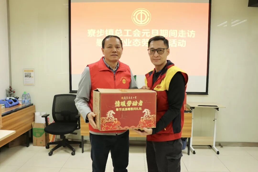 岁末天寒,暖意不减。12月30日,寮步镇总工会专职副主席尹广驱一行前往中外运-敦豪国际航空快件有限公司东莞分公司开展走访慰问新就业形态劳动者活动,实地调研基层工会建设,倾听一线劳动者心声,传递“娘家人”的深切关怀。 座谈会上,慰问组与劳动者代表亲切交流,听取企业经营、用工及工会建设等情况介绍,重点了解企业在保障新就业形态劳动者劳动报酬、休息休假、职业安全等方面的具体举措,以及工会在凝聚职工、维护权益、丰富文化生活等方面的工作成效。交流中强调,要进一步提高对工会工作的认识,畅通企业工会沟通渠道,真正搭建好联系新业态群体的“连心桥”,切实维护好他们的合法权益。 座谈结束后,寮步镇总工会为劳动者代表送上慰问品,感谢他们为地方经济发展和民生保障作出的积极贡献,叮嘱大家注意劳逸结合,保重身体健康。 接下来,寮步镇总工会将继续发挥“娘家人”作用,进一步加强与企业的常态化沟通,及时了解企业运营中的实际困难与需求,积极协调、推动解决相关问题。同时,持续聚焦新就业形态劳动者的急难愁盼,不断拓展服务广度与深度,努力为新就业形态劳动者提供更精准、有温度的服务保障,为企业发展营造和谐稳定的用工环境。