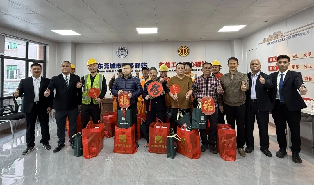 为进一步关心关爱户外劳动者,2月10日,“工会爱心驿站”大朗巷尾站举行揭牌活动。大朗镇副镇长张敏莉、镇总工会专职副主席叶天升等领导以及城管、环卫等职工代表参加仪式。 揭牌仪式后,慰问组为户外劳动者送上春节祝福礼包,向节日期间坚守岗位、辛勤奉献的劳动者致以诚挚问候与新春祝福。 “这个爱心驿站配置很完善,为我们的日常生活带来了很多便利,我们感到很温暖!”户外劳动者代表纷纷为“工会爱心驿站”点赞。 目前,大朗镇共有13家“工会爱心驿站”,驿站配有空调、电视机、饮水机、休息桌椅、储物柜、手机充电器等设施,为广大户外劳动者提供“热可纳凉、渴可喝水、餐可加热、累可歇脚、急可如厕”等爱心服务。 下来,大朗总工会将积极整合资源,扩大工会服务覆盖面,丰富服务内涵、提升服务质量,不断延伸爱心驿站的功能作用,让爱心驿站真正成为广大户外劳动者的暖心港湾。