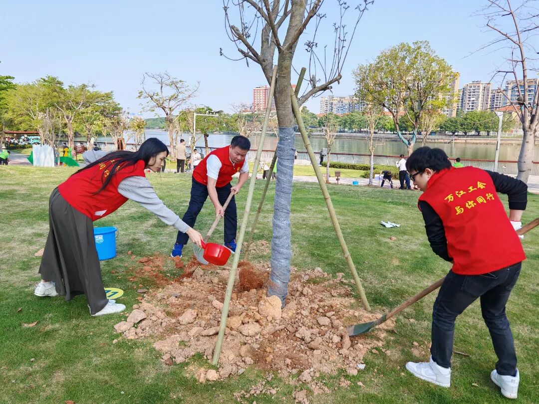 为深入实施全民爱绿植绿护绿行动,鼓励广大职工共同参与绿美东莞生态建设,3月12日前后,万江各级工会积极响应、迅速行动,组织广大职工与工会干部投身义务植树活动,以实干种下希望、以汗水浇灌青绿。 植树活动现场,职工群众热情高涨,大家分工协作、默契配合,挥锹铲土、扶苗填坑、踩实浇水,每一道工序认真细致,每一棵新苗整齐挺立。职工代表以实际行动示范引领,分享生态保护与绿色发展心得,带动更多职工主动参与植绿护绿,以“工会林”主题林建设凝聚共识。 植树造林,功在当代、利在千秋,一棵棵树苗扎根大地,象征着职工对美好生活的向往,承载着工会服务中心、服务职工的使命担当。下来,万江各级工会将继续坚持守绿与植绿并重、行动与宣传同步,在组织现场植树的同时,通过线上线下普及生态文明知识,倡导低碳生活、节约资源,引导职工从身边小事做起,爱护绿地、守护生态。