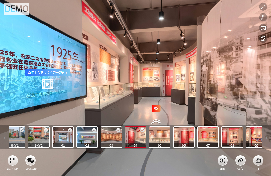 石龙工运历史展,是在2025年石龙工会成立100周年之际建成的专题展馆,位于石龙镇人民广场工会大楼二楼。展馆采用文物展陈、图片史料、场景还原等多元形式,系统呈现石龙工人运动的百年奋斗征程,生动彰显工人阶级紧跟党走、勇担使命的精神内核,突出了工会组织作为党联系职工群众的桥梁纽带作用,是传承红色基因、弘扬劳动精神、凝聚奋进力量的重要教育基地。 近日,石龙工运历史展VR线上展正式上线。职工群众可扫码进入线上展,点击箭头或者选择场景游览展馆,在每个场景都可随意左右上下拉动360度游览展馆。 石龙工运历史展VR线上展链接: 欢迎预约现场参观: 地址:石龙镇旧城区人民广场工会大楼2楼