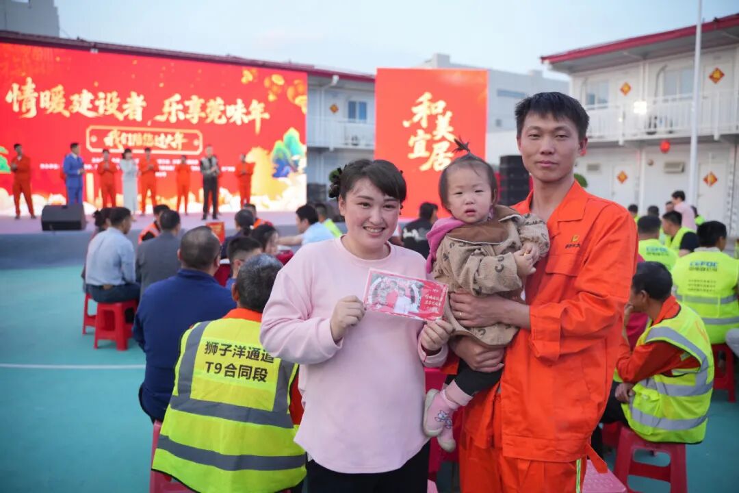 “我干了二十多年工程,天南海北都去过,这是头一回在工地吃到这么丰盛的年夜饭。”狮子洋通道T9项目副总监彭爱民坐在2号桌,身旁是妻子。今年夫妻俩都没回老家,留在工地坚守。“干工程的,常年在外,陪伴家人确实少。今天她在我旁边,也算团圆了。”